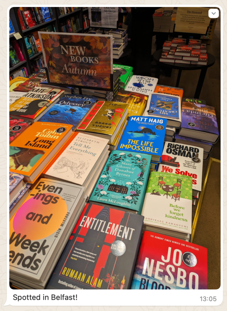 That night, I got to see this book not just in my hands but in an actual bookshop – Waterstones in Craigavon. This wonderful store and its wonderful staff hosted the launch – a little Q&A with some signings – and though I knew it would be there, upon seeing my book in store for the first time, I still felt a surge of self consciousness akin to witnessing one of your selfies printed and pasted up in public.